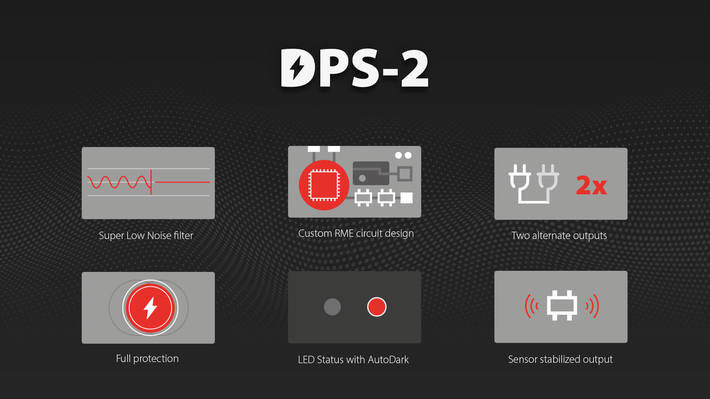 The new DPS-2 is an exceptional linear power supply that boasts not only impressive technical data but also a wide range of unique and highly useful features. For instance, the compact device features two differently filtered outputs. The housing and front panel of the DPS-2 are based on the ADI-2 series, accommodating RME's innovative circuitry design on only half rack width.